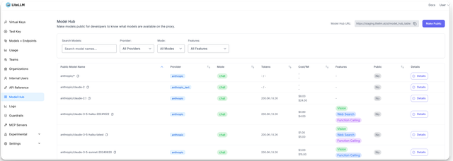 Navigate to the Model Hub page in the Admin UI (PROXY_BASE_URL/ui/?login=success&page=model-hub-table